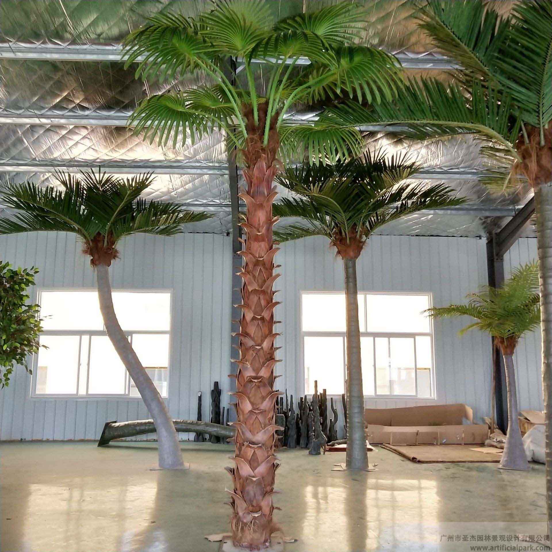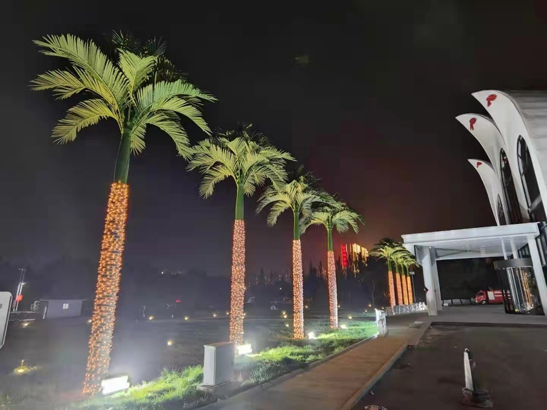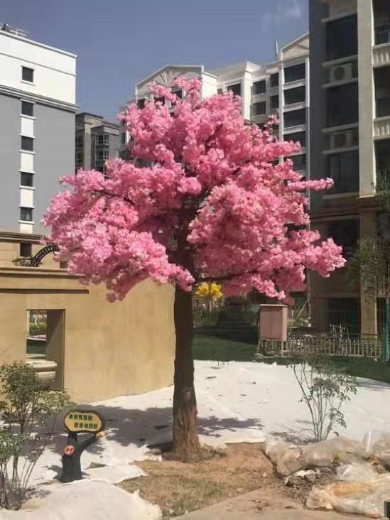 仿真树是专为大型空间造景打造的“自然地标”,涵盖松树、椰子树、樱花树、果树等品类,以“树干-树枝-树叶”全结构仿真为核心。采用玻璃钢/水泥基底+环保PE/PVC枝叶,通过3D扫描真树纹理(如松树鳞片、椰子树棕皮)复刻树干形态,搭配模块化枝叶组(密度/长度可调),模拟自然生长姿态(如松针下垂、椰叶舒展);部分产品植入金属骨架,承重强(抗风等级8级),高度可达2-15米(适配大型场景)。